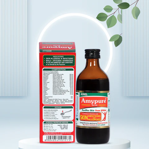 Amypure Syrup is a unique formula for inner health and outer glow that acts by detoxifying impurities of blood. It is a beneficial phytopharmaceutical used for the management of chronic skin infections and skin allergies, facilitating fast symptomatic relief. It helps to repair, revive and rejuvenate skin naturally. It helps to maintain healthy skin in both women and men by working on the root cause.