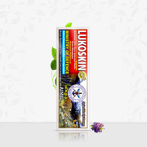 Lukoskin Ointment is a research product of DRDO that is curated using potent herbs. It is helpful in the management of skin conditions and in promoting melanin synthesis. This ointment is enriched with rare selected herbs from the Himalayas that helps relieve blister, the formation of blisters and reduce irritation.
