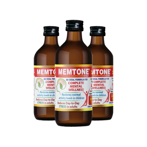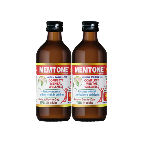 Memtone Syrup is a 200 ml Ayurvedic formulation that may support cognitive functions and overall mental well-being. Enriched with natural ingredients such as Mandookparni, Brahmi, Shankhpushpi, and Licorice, Memtone Syrup is crafted to improve the learning process, enhance memory, and exert antioxidant actions. Memtone Syrup is safe, well-tolerated, and effective for both children and adults.