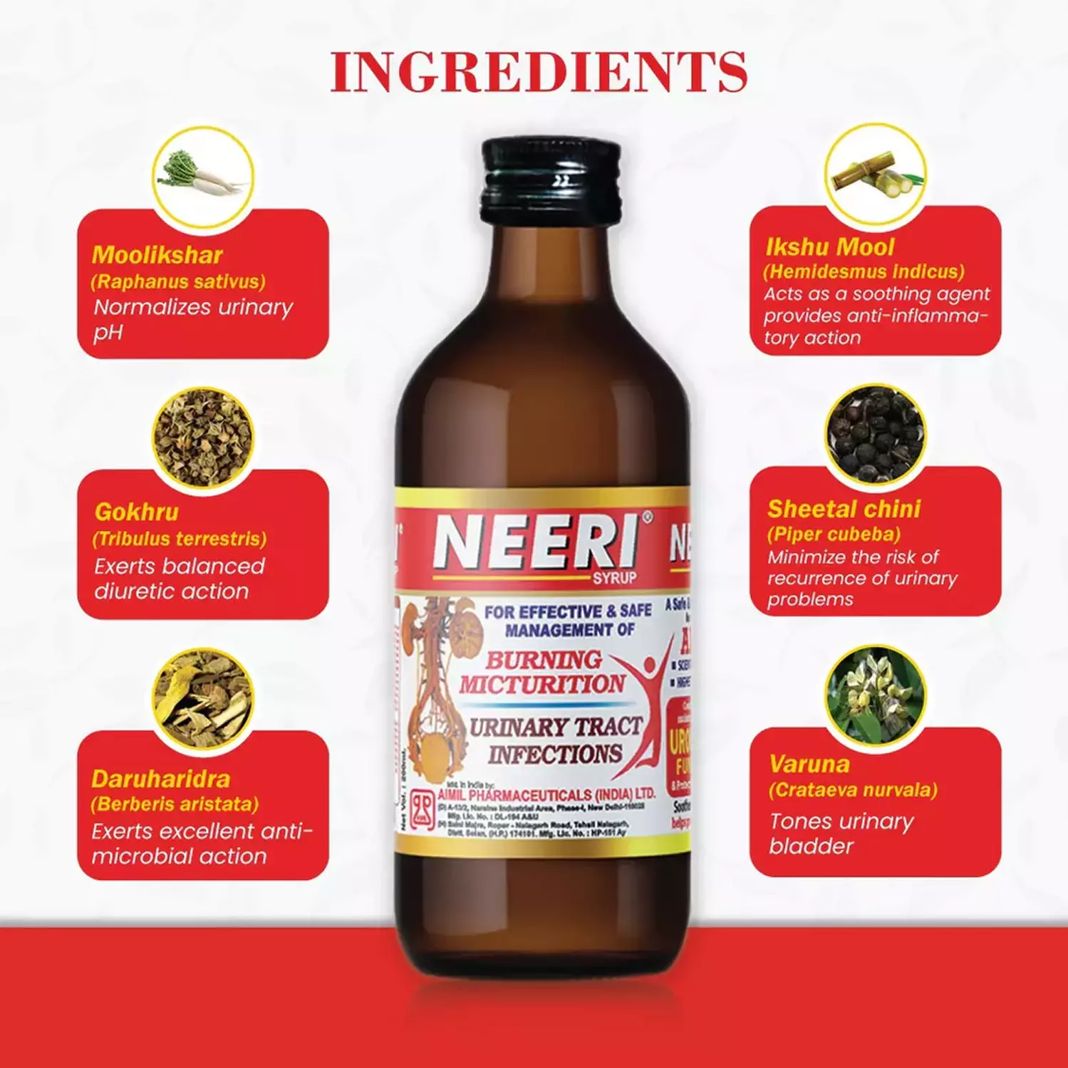 Neeri Syrup is a natural and Ayurvedic syrup that helps enhance kidney health and function. It is formulated with 19 herbal extracts and powders that help detoxify the urinary tract and has nephroprotective properties.