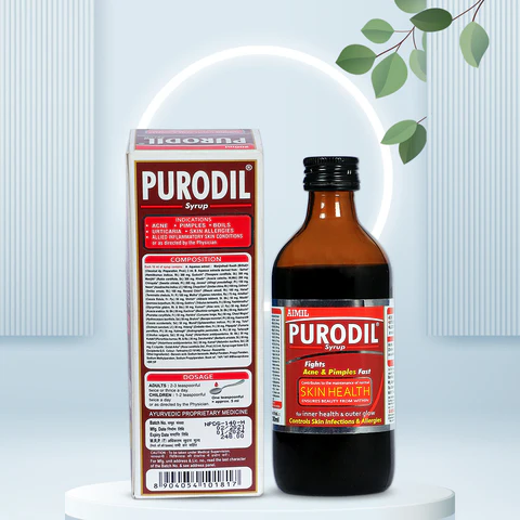 Purodil Syrup is a polyherbal formulation designed to provide a comprehensive and systemic approach to managing various skin disorders, particularly acne and pimples. The syrup is formulated with a blend of over 35 botanical extracts, key micronutrients, and antioxidants. Purodil Syrup acts in a multi-dimensional manner to address the underlying causes of skin disorders. It is said to have antimicrobial, anti-inflammatory, anti-allergic, and antioxidant properties. The syrup is also believed to function as a blood detoxifier and immune system enhancer.