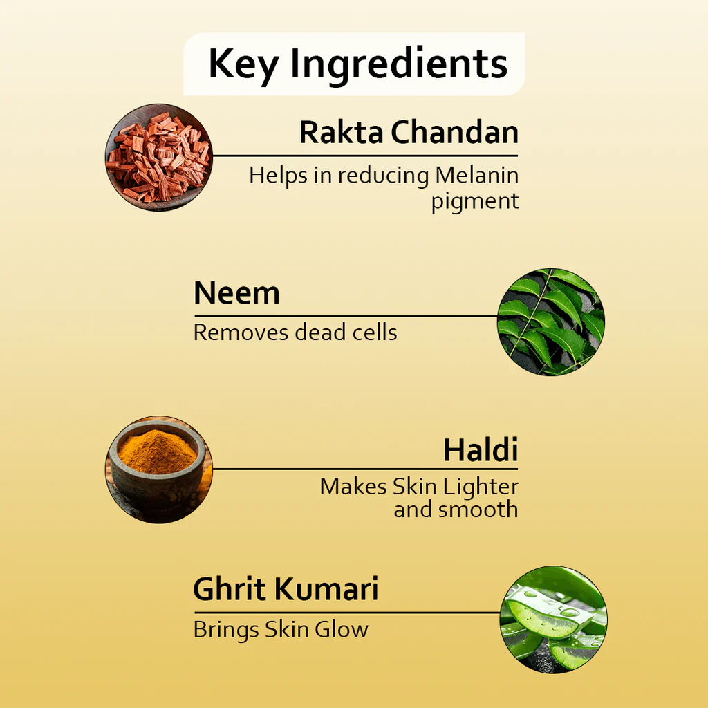 Helps in reducing Melanin pigment Makes Skin Lighter and smooth Removes dead cells Brings Skin Glow