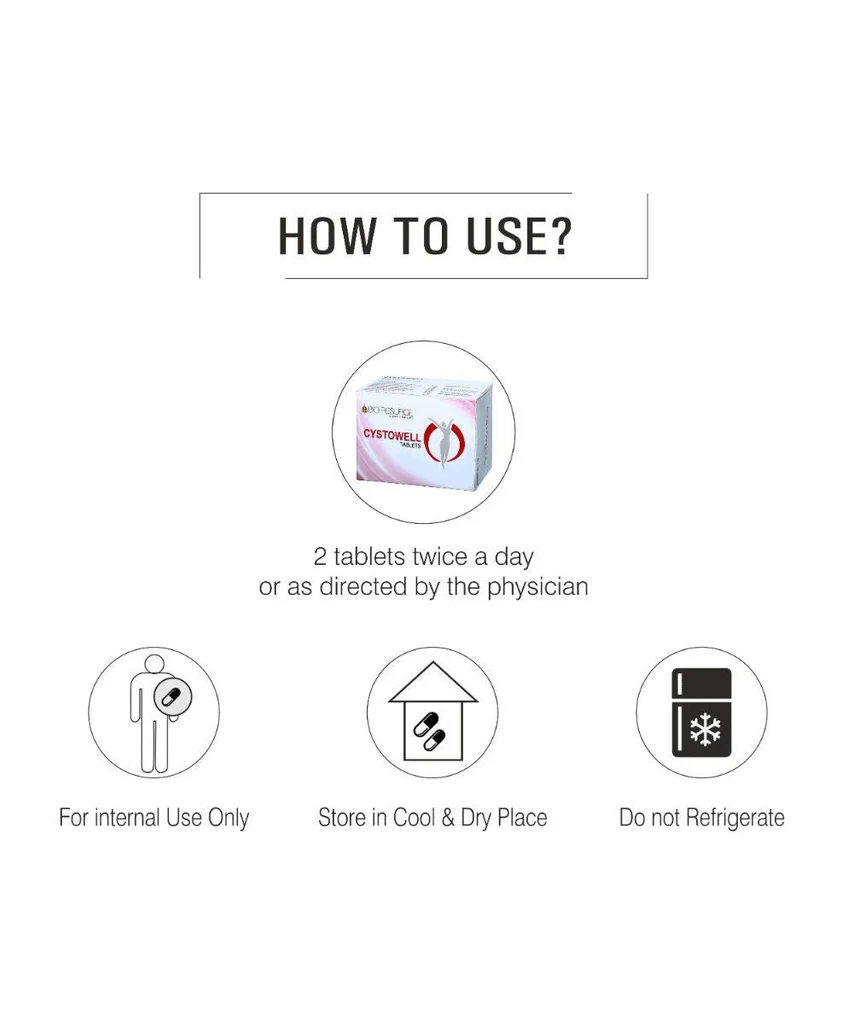 The Cystowell tablet is a combination of herbal ingredients, which balances hormones & regulates the process of ovulation. It eliminates the process of cyst formation in the ovary & facilitates the conditions for conception in the body. This reduces and eliminates ovarian cysts and increases fertility.