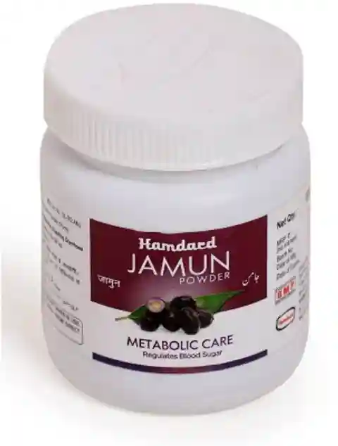 Promotes metabolic health Helps to regulate blood sugar levels Rich in antioxidants that combat free radicals Supports digestive and liver functions Hamdard Jamun Powder is derived from the seeds of the jamun fruit (Syzygium cumin). This fine, nutrient-rich powder embodies the essence of this indigenous fruit, celebrated for its myriad health benefits. Sourced from high-quality jamun seeds, the powder undergoes meticulous processing to retain its natural goodness, delivering a potent blend of vitamins, minerals, and antioxidants. With a distinct deep purple hue, the powder boasts a tangy-sweet flavour and is a versatile addition to various culinary creations and wellness routines. Jamun (Syzygium cumin) Seed powder (Pure)
