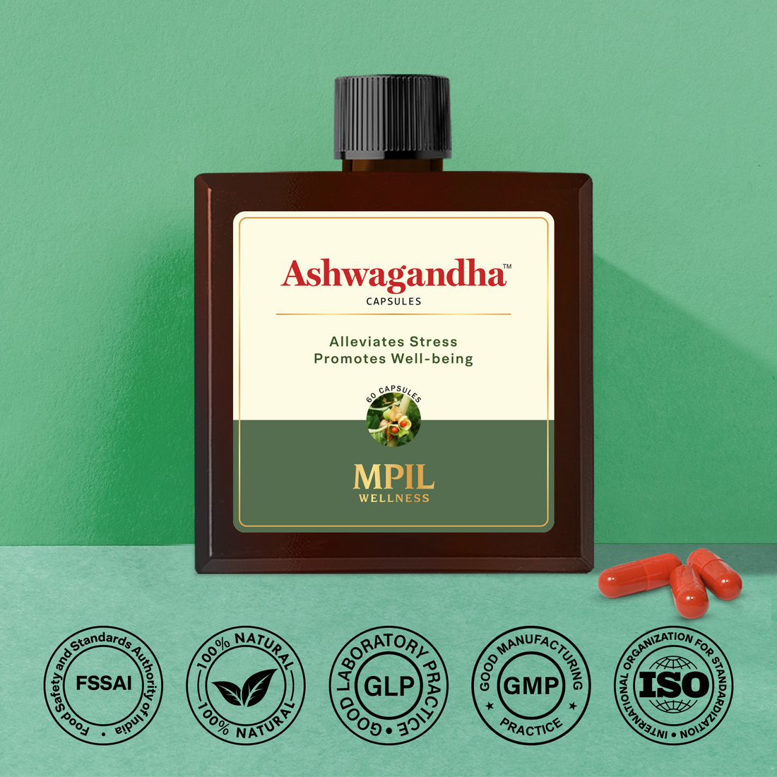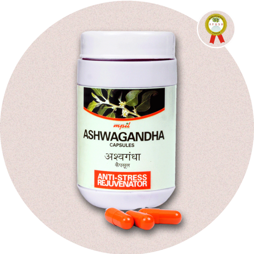 MPIL Ashwagandha Capsules are an Ayurvedic supplement designed to help manage stress and anxiety, improve energy levels and stamina, and support overall well-being. They contain a blend of Ashwagandha and Jatamansi extracts. Key Ingredients & Composition According to the manufacturer's details on various retail sites, each capsule contains a specific blend of herbal extracts: Ashwagandha Extract (Withania somnifera): 350 mg of root extract, known for its potent adaptogenic properties that help the body manage stress. Jatamansi (Nardostachys jatamansi): 100 mg of root extract, valued for its calming effects that support mental relaxation and cognitive function.