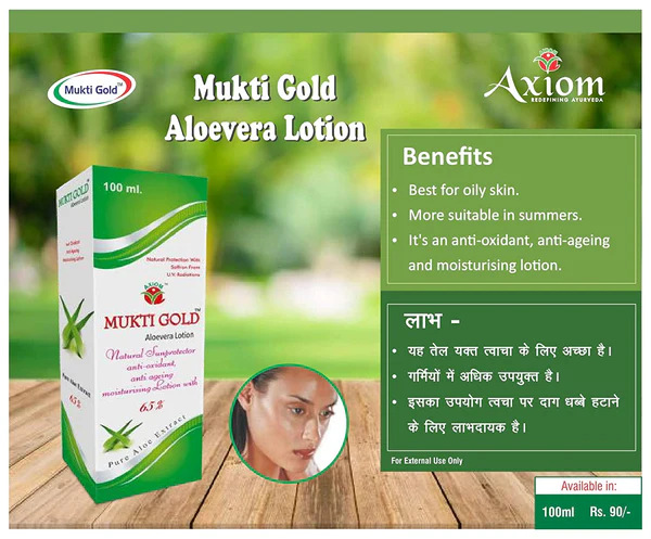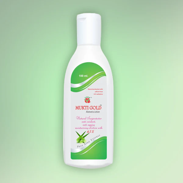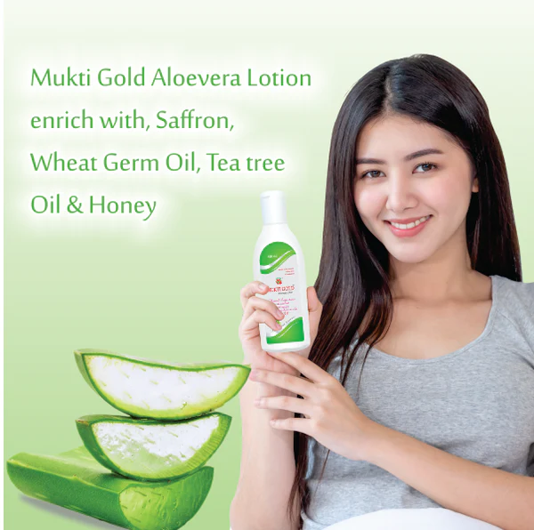 VERSATILE FORMULA: Enjoy the versatility of Mukti Gold Aloe Vera Lotion for both face and body. Whether you need to soothe dry, irritated skin or help to protect against sun damage, this luxurious formula has you covered, leaving your skin moisturized, nourished, and beautifully rejuvenated.