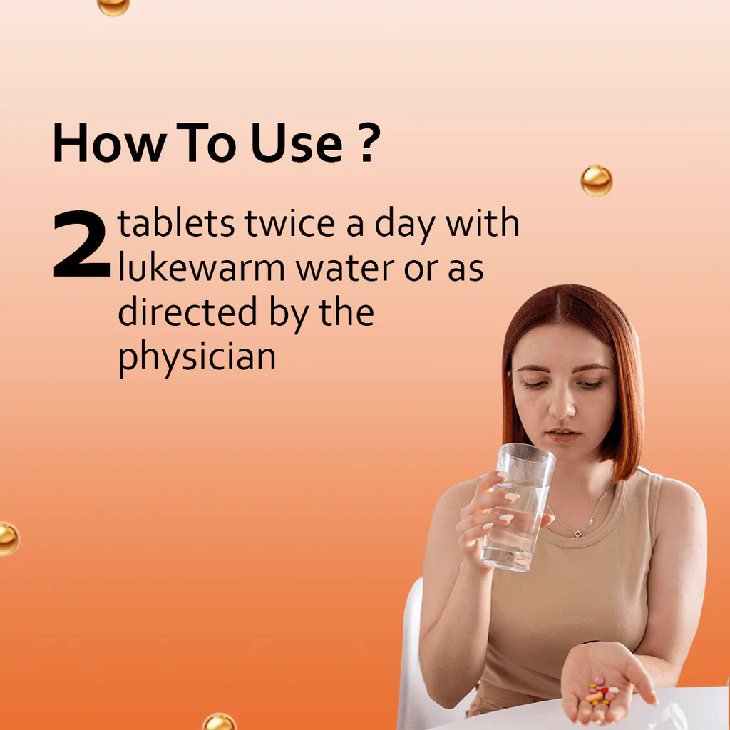 An effective Thyroid function regulator. KANCHNAAR directly stimulates the thyroid gland to increase its hormones; GUGGUL is Guggulsterone which inhibits pro-inflammatory cytokines thus reduces thyroid swelling, reduces weight due to calorie burning action, increases Iodine uptake into the thyroid gland, thus increases conversion of T4 into T3 hormone without increasing TSH; PIPPALI increases absorption of Selenium which is needed to convert T4 into T3; AMLA & GORAKHMUNDI act as a Anti-oxidant, anti-inflammatory and Immunity booster; TRIPHLA & DHANIA improves digestion and promotes BMR (basal metabolic rate) also helps in reducing weight and DALCHINI increases Regulatory T cells which help to suppress autoimmunity and Dalchini also acts as anti-inflammatory.