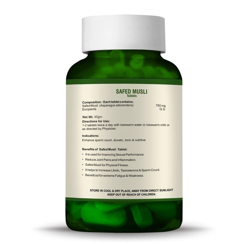 Key Benefits Helps to improve sexual health Useful in Joint pains Helps normalizing acidity Helps to relieve anxiety Musli have anti-inflammatory and pain-relieving properties Directions for Use 1-2 tablets twice a day or as directed by your physician.