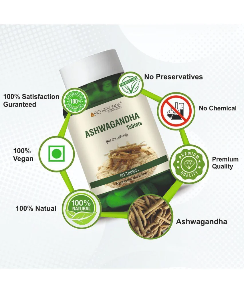 Key Benefits of Ashwagandha Tablets Enhances Strength & Vitality Supports a healthy immune system May have anti-cancer properties Ashwagandha helps to Strengthen Nervous System Alleviates Anxiety How to Use Ashwagandha Tablets: Take 1-2 tablets twice daily or as directed by the physician.