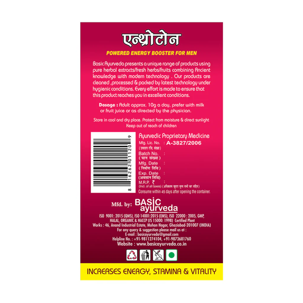 Basic Ayurveda's Anthrotone Granules is an Ayurvedic product. Helpful for men's physical health weakness. Physical strength Energy booster Helps boost Energy Helps improve digestion. Immunity enhancer. Helps Improve Skin Health. Helps to remove toxins from the body.