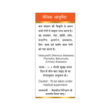It is highly useful in Vata disorders, useful in diseases, and improves health Useful in the weakness of the heart, fainting, epilepsy, helps relieve ailments associated with bronchitis and tuberculosis Indicated in neurological and nervous system disorders such as Apasmara or epilepsy Indicated in sciatica and related diseases Take 1 tablet 2 times a day after meals or as directed by the physician.