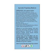 Imparts bone strength and has anti-aging property Improves overall immunity and eye health It is helpful in relieving joint pain, stress, and tension It works as an energy enhancer and improves memory power It improves body strength and stamina Fights fatigue and improves heart health 2 capsule twice a day with water or as directed by a physician