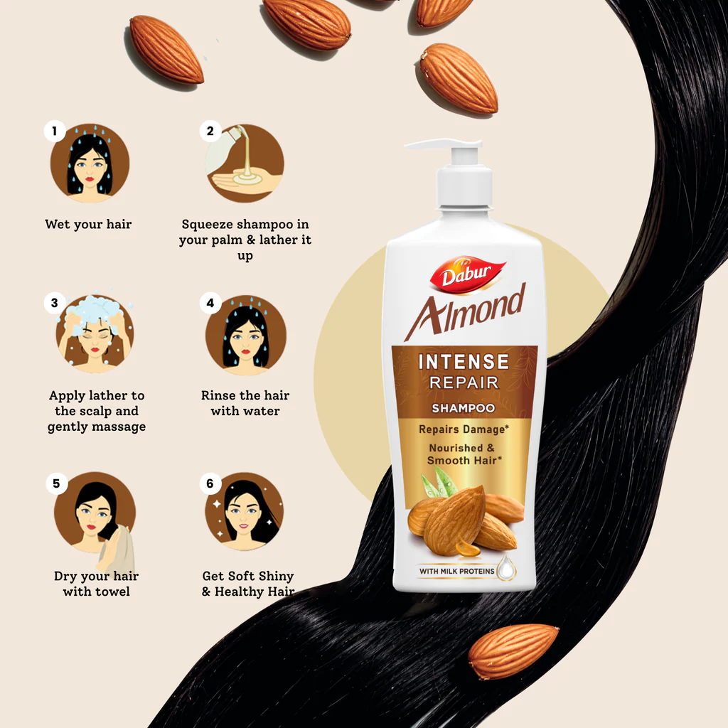 Dabur Almond Intense Repair Shampoo is a premium quality hair care product that contains the goodness of almond oil and milk, which are known for their nourishing and moisturizing properties.