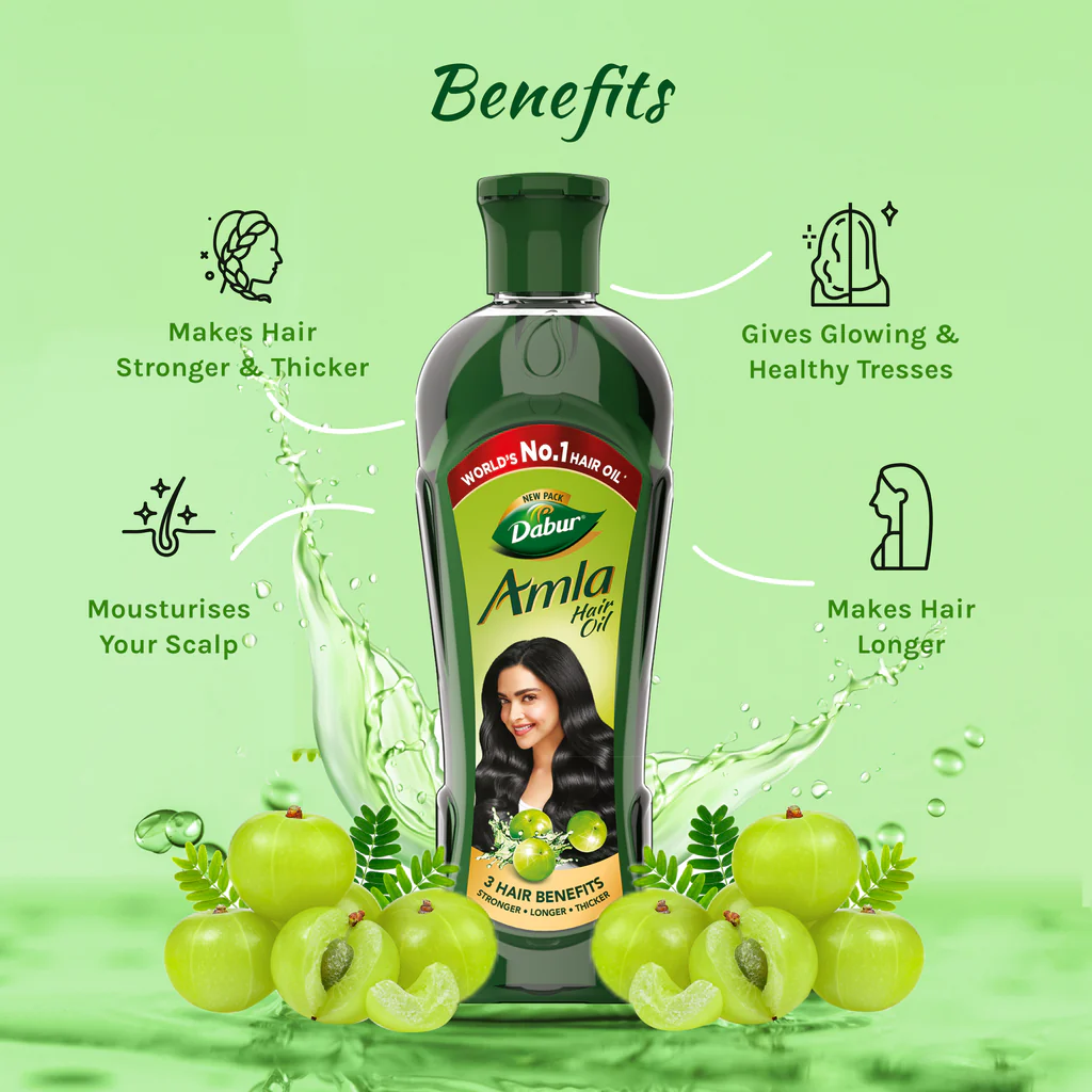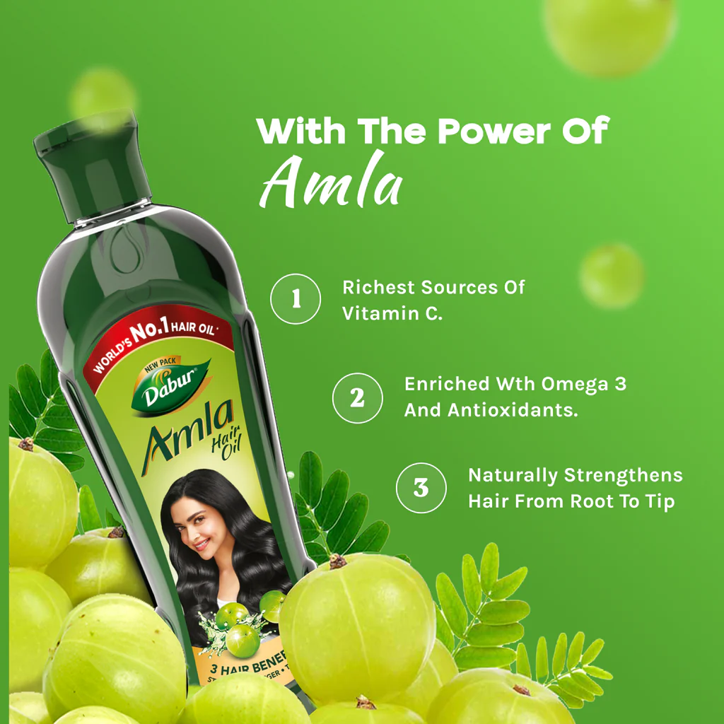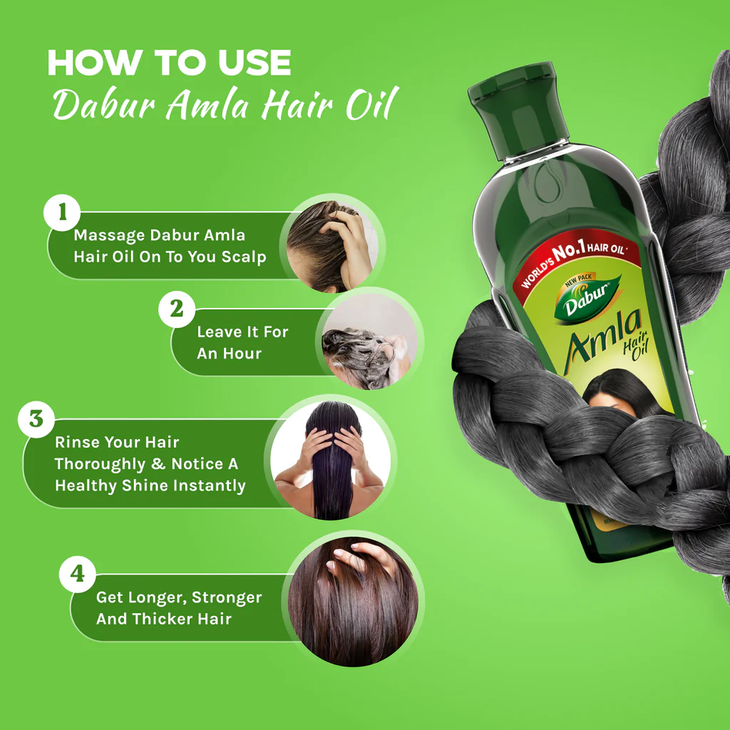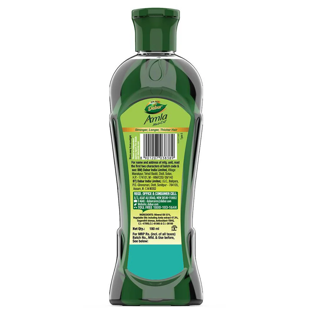 Dabur Amla Hair Oil is made from Amla extract. Amla is known to be a power fruit for your hair. As the power of Amla nourishes your scalp from within, your hair is strengthened from root to tip. This helps give you thick, long & silky hair.