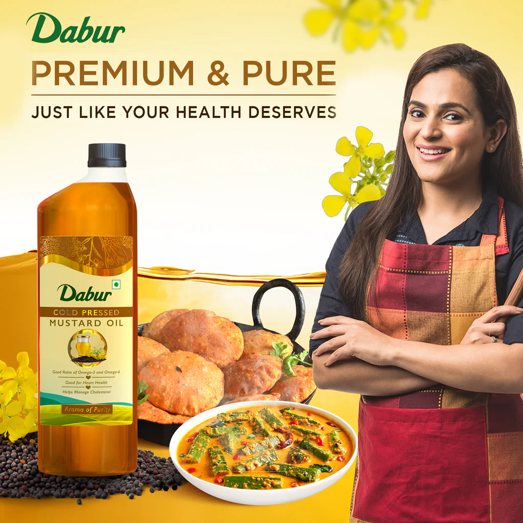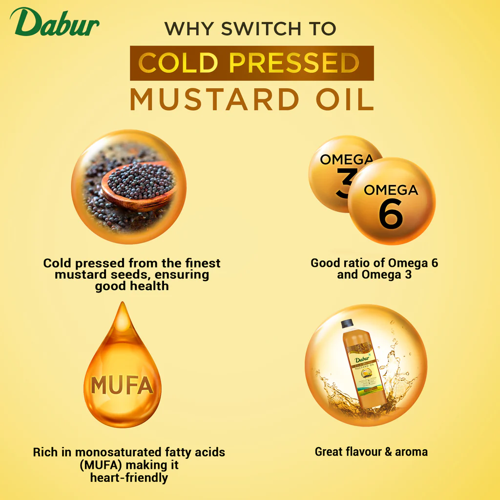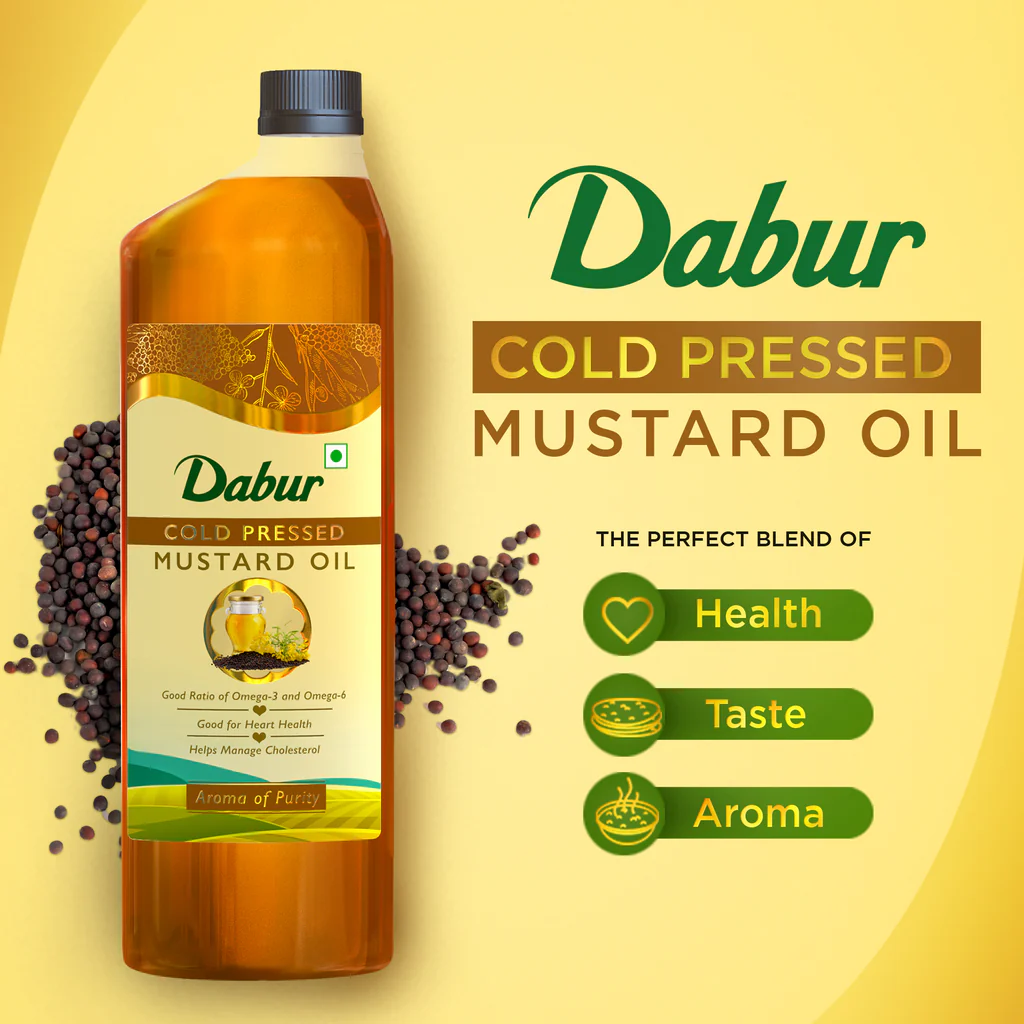 Dabur Cold Pressed Mustard Oil is traditionally cold pressed from finest quality mustard seeds, ensuring that the natural properties and health benefits are intact.