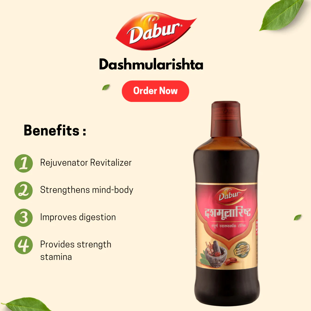 Experience the benefits of Dabur Dashmularishta, including improved bone strength, heightened stamina, and support for overall well-being. Prioritize your health journey with Dabur Dashmularishta