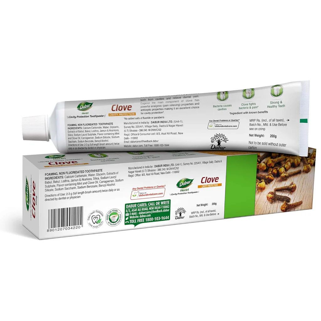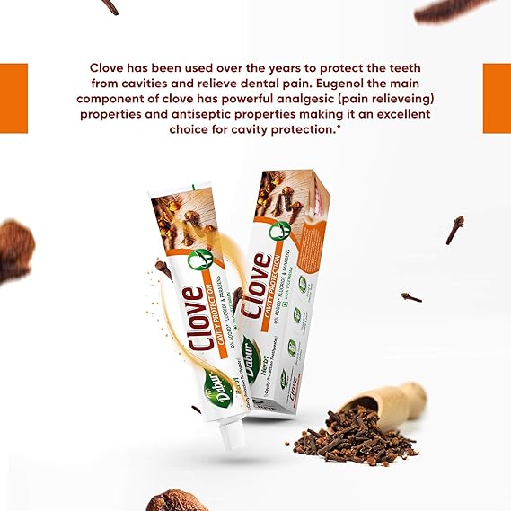 With over 130 years of Herbal expertise, Dabur has always been committed to the health and well-being of every household. In keeping with this motto, Dabur Herb'l range of toothpastes have been specially formulated for those consumers who are looking for natural solutions for their various oral care needs. Dabur Herb'l Clove Toothpaste has been formulated with the goodness of nature's wonder herb Clove, which has been used over the years to protect the teeth from cavities and relieve dental pain. Eugenol, the main component of Clove has powerful analgesic (pain relieving) and antiseptic properties making it an excellent choice for cavity protection. Dabur Herb'l Clove Toothpaste's Fluoride & Paraben Free formulation has been specially crafted to ensure that you have a pleasant mouthfeel post brushing, so that you can begin your day on just the right note.