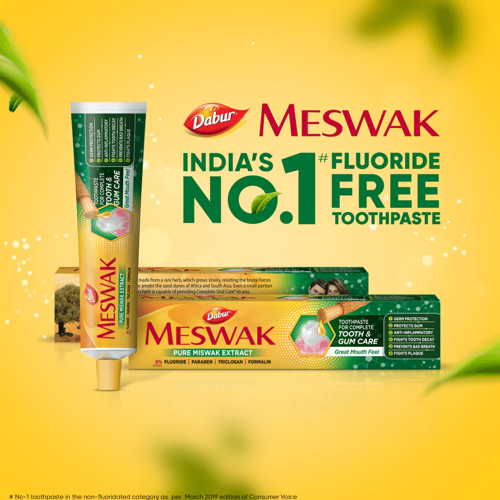 Dabur Meswak is made from pure extract of rare Miswak herb which grows slowly, resisting the brutal forces of nature amidst the sand dunes of Africa and South asia .