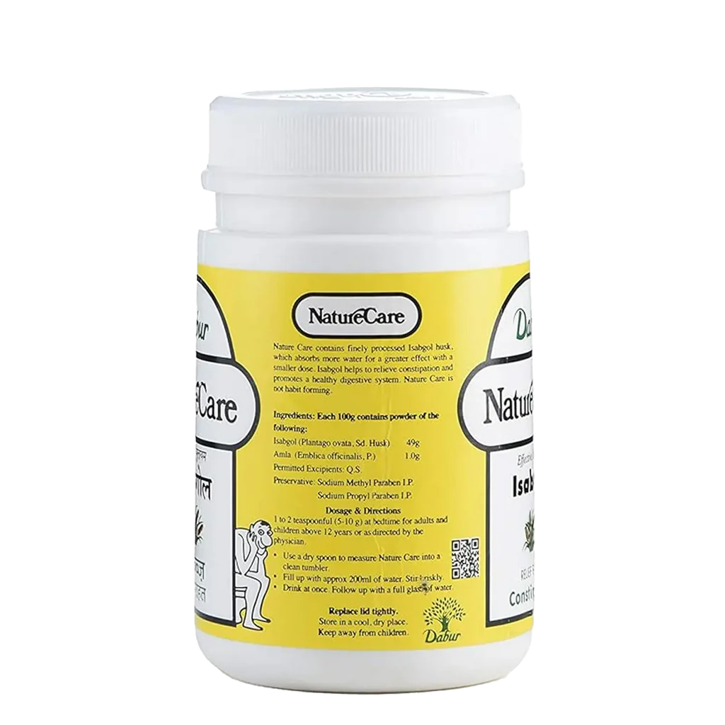 Dabur Nature Care Isabgol is a powdered Pysillium-based natural laxative for relief from constipation.