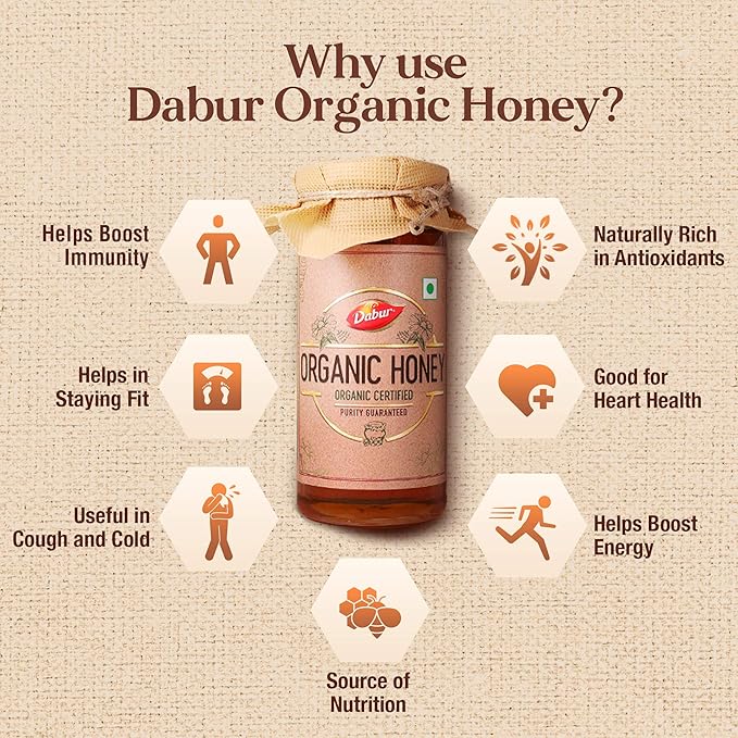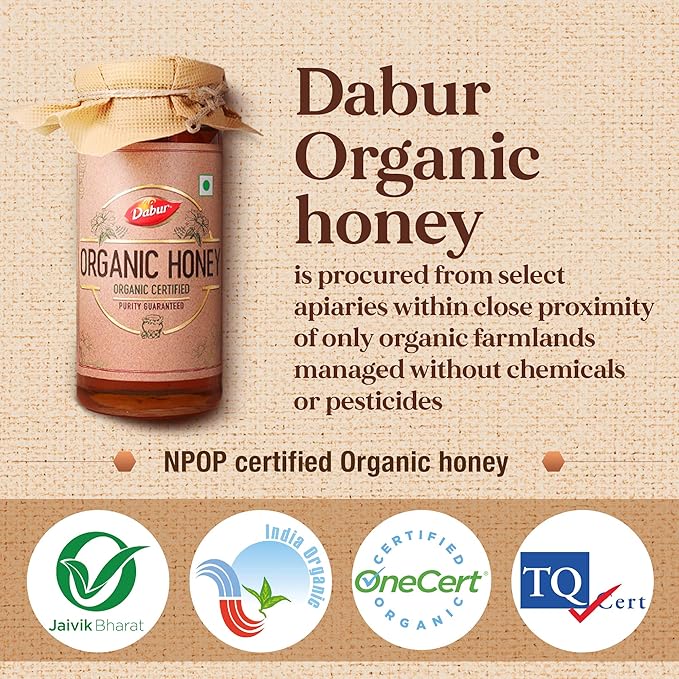fOrganic is not just a one-time choice, it’s a way of life. Are you also always in search of organic goodness for your amily? Are you looking for 100% Pure and Natural honey straight from the hive? Then here we present to you, Dabur Organic Honey which is NPOP organic certified honey from the house of Dabur Honey – World’s No 1 Honey brand. This thick delicious honey is sourced from the hives