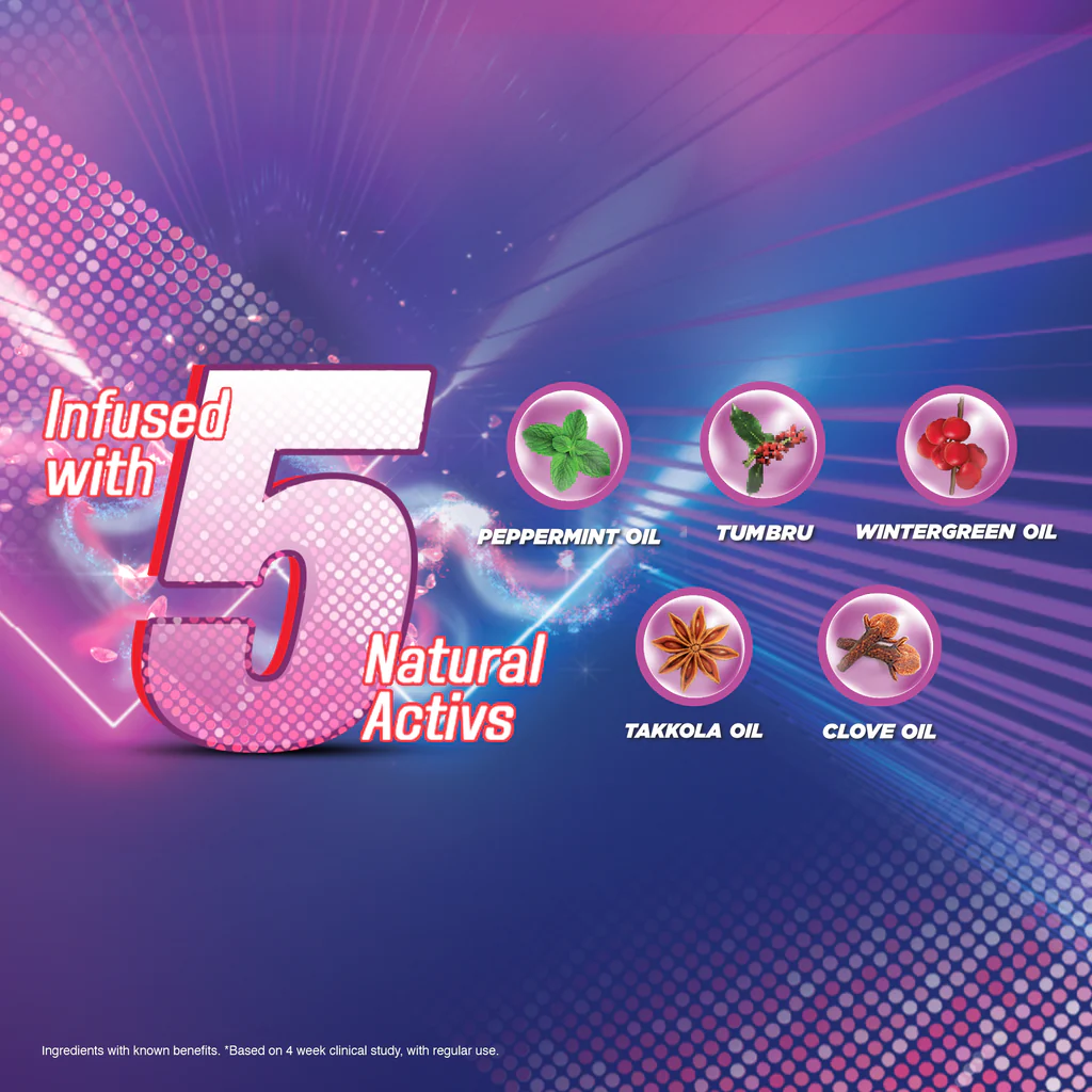 Are you Bae Ready? Dabur Red Bae Fresh Gel contains 5 Freshness Natural Activs & is clinically proven to give you up to 12 hours of freshness so that you can always be BAE READY. Its 5 Freshness Natural Activs are, 1. Wintergreen Oil : fights Bad Breath 2. Peppermint Oil : Freshens Breath 3. Clove Oil : Fights Cavity Germs 4. Takkola Oil : Fights Malodour Germs 5. Tumubru : Relieves Toothache