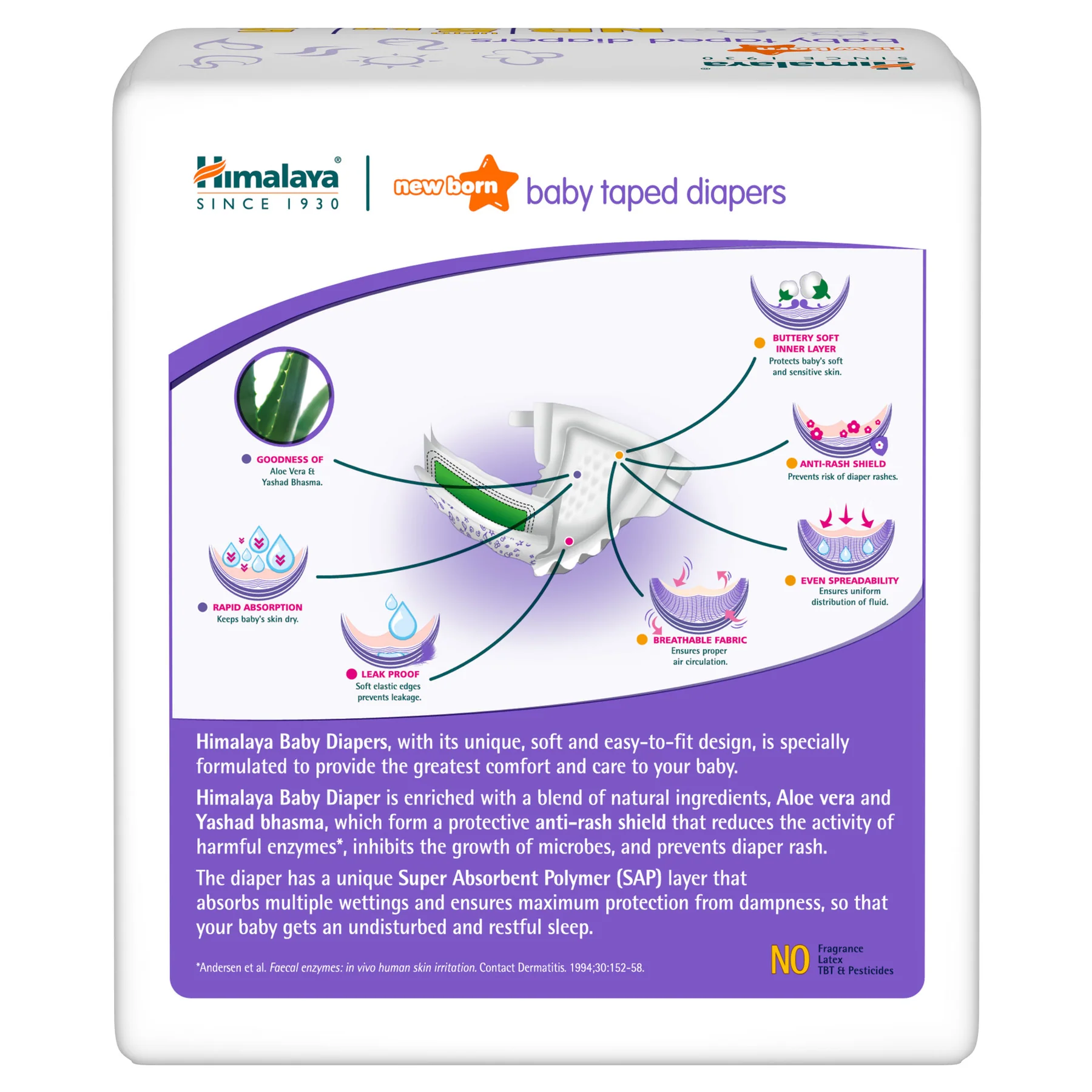 Himalaya Baby Diapers have a unique, soft, easy-to-fit design, specially designed to provide the greatest comfort and care to your baby. INGREDIENTS: Aloe Vera and Yashad Bhasma Additional information: Directions for Use: -Clean the diaper area with "Himalaya gentle baby wipes." -Place the diaper under the baby's body & adjust the diaper below the navel. -Pull the velcro tapes properly & fix in a symmentrical position. -Readjust if needed, to ensure a comfortable fit.