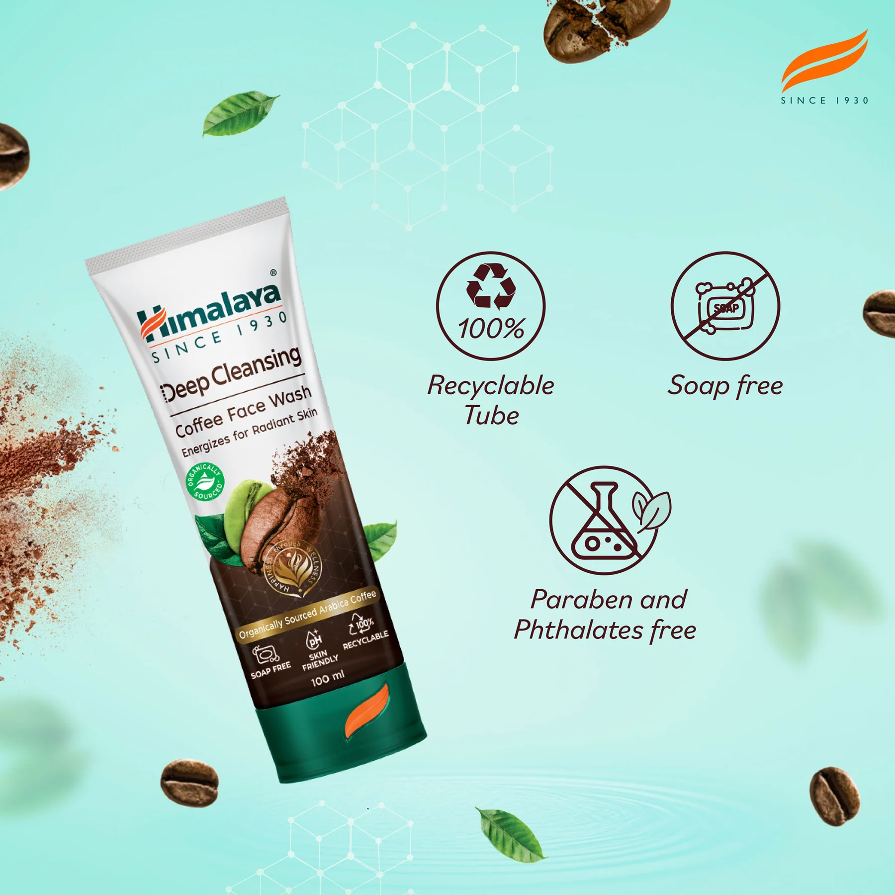 Himalaya Deep Cleansing Coffee Face Wash is a unique and effective blend of Arabica Coffee and Cinnamon that removes deeply embedded impurities and oil residue. Roasted and Green Arabica Coffee beans, rich in potent antioxidants, help fight the damaging effects of free radicals, while Cinnamon protects skin from environmental stress. A perfect blend and aroma that leaves your skin feeling clarified, energized, and radiant. Brewed for good vibes only! INGREDIENTS: Roasted and Green Arabica Coffee, Cinnamon Additional information - Soap-free formulation - Paraben-free, Phthalate-free - Free from artificial color - Suitable for all skin types - Dermatologically tested - Vegan formula - 100% recyclable tube Directions for Use: - Moisten face and neck. - Apply a small amount of Himalaya Deep Cleansing Coffee Face Wash, and gently work up a lather using a circular motion. - Wash off and pat dry. - Use twice daily. For best results, use along with the Himalaya Coffee range of skin care products.