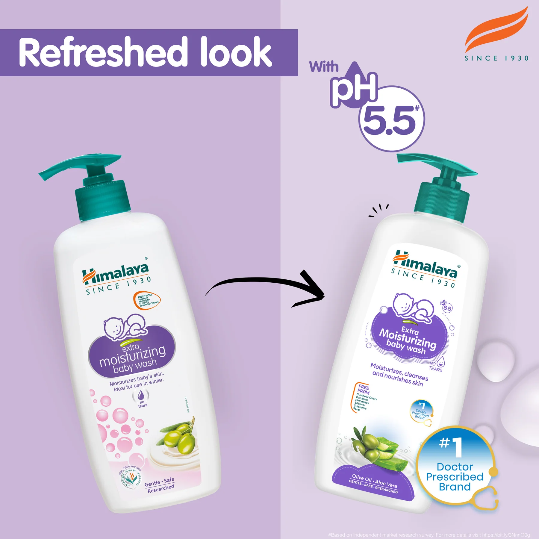 Himalaya Extra Moisturizing Baby Wash cleanses, hydrates, and moisturizes baby's skin. A pH-balanced formulation, its extra moisturizing action helps prevent post-bath dryness in babies with dry skin. The mild, "no tears" formulation is gentle on baby's eyes and does not cause irritation. INGREDIENTS: Aloe Vera, Almond Oil, Olive Oil, Indian Lotus, Milk. Additional information: - Head-to-heel wash which cleanses, hydrates, moisturizes, and helps keep baby’s skin soft and supple. - Helps prevent post-bath dryness. - Mild, “no tears†formulation. - Suitable for newborn’s dry skin. - Ideal for use in winter and for babies with dry skin. Directions for Use: Pour Himalaya Extra Moisturizing Baby Wash onto a wet sponge or hands and apply to baby’s skin. Gently work up a lather and rinse. Free from: - Parabens - Phthalates - Sulfates - Synthetic color