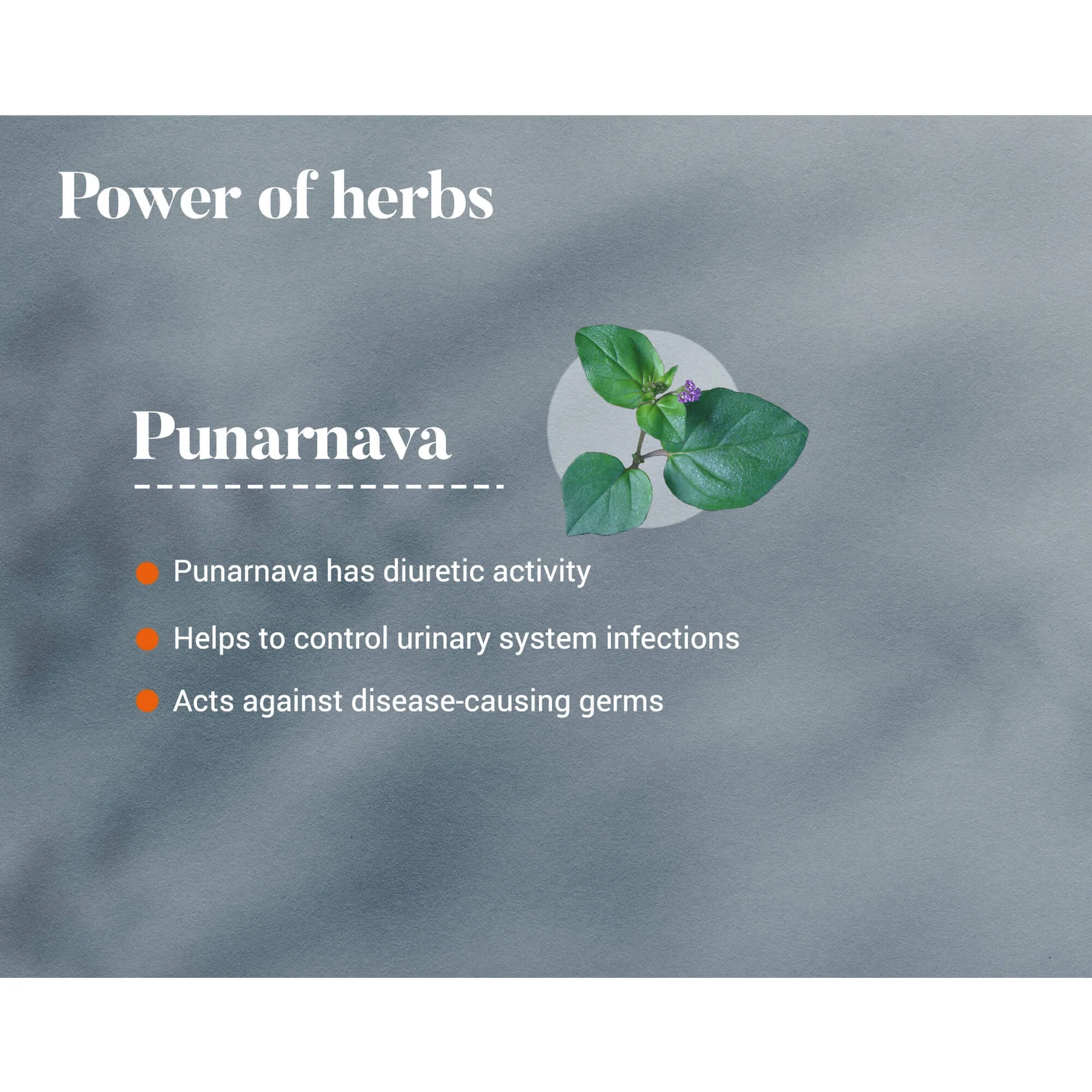Punarnava Additional information: Directions for Use 1-2 tablets twice daily or as directed by your physician. Composition: Each tablet contains: Punarnava (Boerhaavia diffusa) root extract – 250 mg. Special Instructions: It is advisable to consult your physician before you start using the product in these situations: - Pregnancy - Breastfeeding - In Conditions which require special medical care Specific contraindications that have not been identified Please consult your physician if symptoms persist.