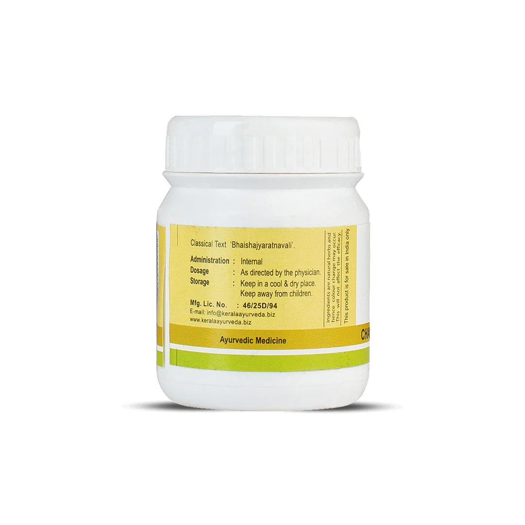 Kerala Ayurveda Chandraprabha Gulika is a traditional Ayurvedic tablet sourced from the timeless wisdom of the Ayurveda book, Bhaishajyaratnavali. This natural supplement for kidney health helps manage recurrent urinary tract infections and reduces inflammation. Infused with renal-rejuvenating herbs, this natural diuretic tablet effectively cleanses, safeguards, and maintains the pH balance of the urinary tract. Although Chandraprabha Gulika is recognized as Sarva Roga Pranaashini, capable of curing various ailments, its primary action is on Mutravaha srotas and helps optimize Vata-kapha dosha. Chandraprabha Gulika helps manage dysuria or mutrakrichra, relieves burning sensation during urination, and regulates urine flow. With its laghu and ruksha guna, Chandraprabha Vati helps remove accumulated ama in the mutravaha srothas and decreases excessive moisture (vitiated Kleda). Moreover, the ingredients like Shilajatu and Guggulu have Rasayana properties that help alleviate symptoms associated with prameha or high blood sugar levels. Experience renewed vitality in your renal health and say goodbye to the troublesome symptoms of recurrent urinary tract infections. Chandraprabha Gulika, with its powerful combination of renal rejuvenating herbs and natural diuretics, revitalizes your renal system, ensuring the optimal functionality of your urinary tract. Chandraprabha Gulika helps soothe signs of urinary tract infection (UTI), such as pain and burning sensation during urination, persistent urges to urinate, frequent urination with only small amounts of urine, cloudy urine, and strong-smelling urine. Its potent herbal blend synergistically strengthens and cleanses your urinary tract, supporting renal detoxification and rejuvenation. Additionally, the rejuvenating properties of Guduchi, Guggulu, and Shilajatu contribute to revitalizing the renal system and helping maintain optimal blood sugar levels.