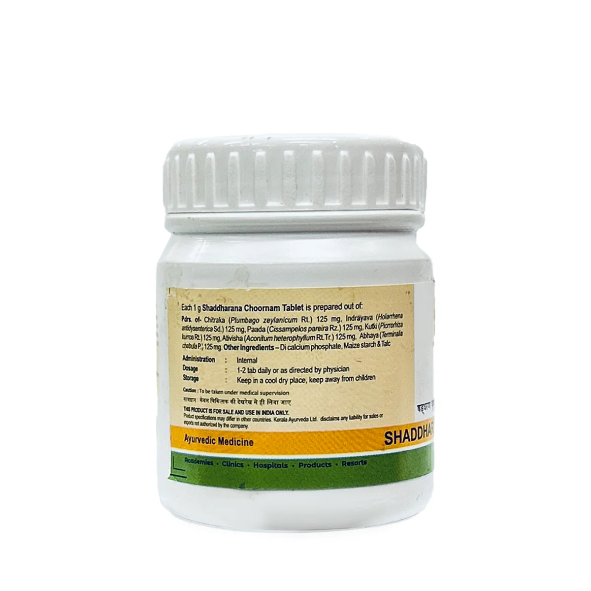 Kerala Ayurveda Shaddharana Choornam Tablets are perfectly curated, with six herbal ingredients in equal quantities. It is an Ayurvedic medicine for gastric conditions and helps improve digestion. Shaddharana Choornam Tablets are used for various digestive disorders ranging from gas trouble, abdominal bloating, indigestion, constipation, and diarrhea. It is used as a supplement for correcting metabolic insufficiency and associated conditions such as weight loss and cholesterol levels. Shaddharana Choornam Tablet also benefits in relieving symptoms associated with musculoskeletal and skin conditions. Improve digestive health: The ingredients in Shaddharana Choorna Tablets kindle the digestive fire and improve digestive strength, resulting in proper digestion and absorption of food. Beneficial in managing digestive disorders: Such as gas trouble, abdominal bloating, indigestion, and constipation. Kerala Ayurveda Shaddharana Choornam Tablet uses Chitraka, Indrayava, Abhaya, etc., as the primary ingredients that aid in managing digestive conditions and maintaining normal function. Helps relieve musculoskeletal conditions: Kerala Ayurveda Shaddharana Choornam Tablets have anti-inflammatory properties and help manage inflammatory changes associated with musculoskeletal conditions, such as rheumatoid arthritis. Aids in correcting metabolic conditions: The ingredients in Shaddharana Choornam Tablets help correct metabolic insufficiency and relieve obesity, diabetes, and dyslipidemia. Provide relief from skin conditions: What we eat reflects in our body. The majority of skin diseases arise as a result of the accumulation of unwanted materials in the body. Kerala Ayurveda Shaddhara na Choornam Tablets contain Indrayava, Kutki, Ativisha, etc., that help in body detoxification and relieve skin conditions. Alleviate vitiated Vata and Kapha Doshas: In Ayurveda, Vata and Kapha doshas play a significant role in the functioning of the digestive system. Therefore, any imbalance in these doshas will be reflected as digestive conditions. Kerala Ayurveda Shaddharana Choornam Tablets help restore Vata and Pitta dosha to normalcy.
