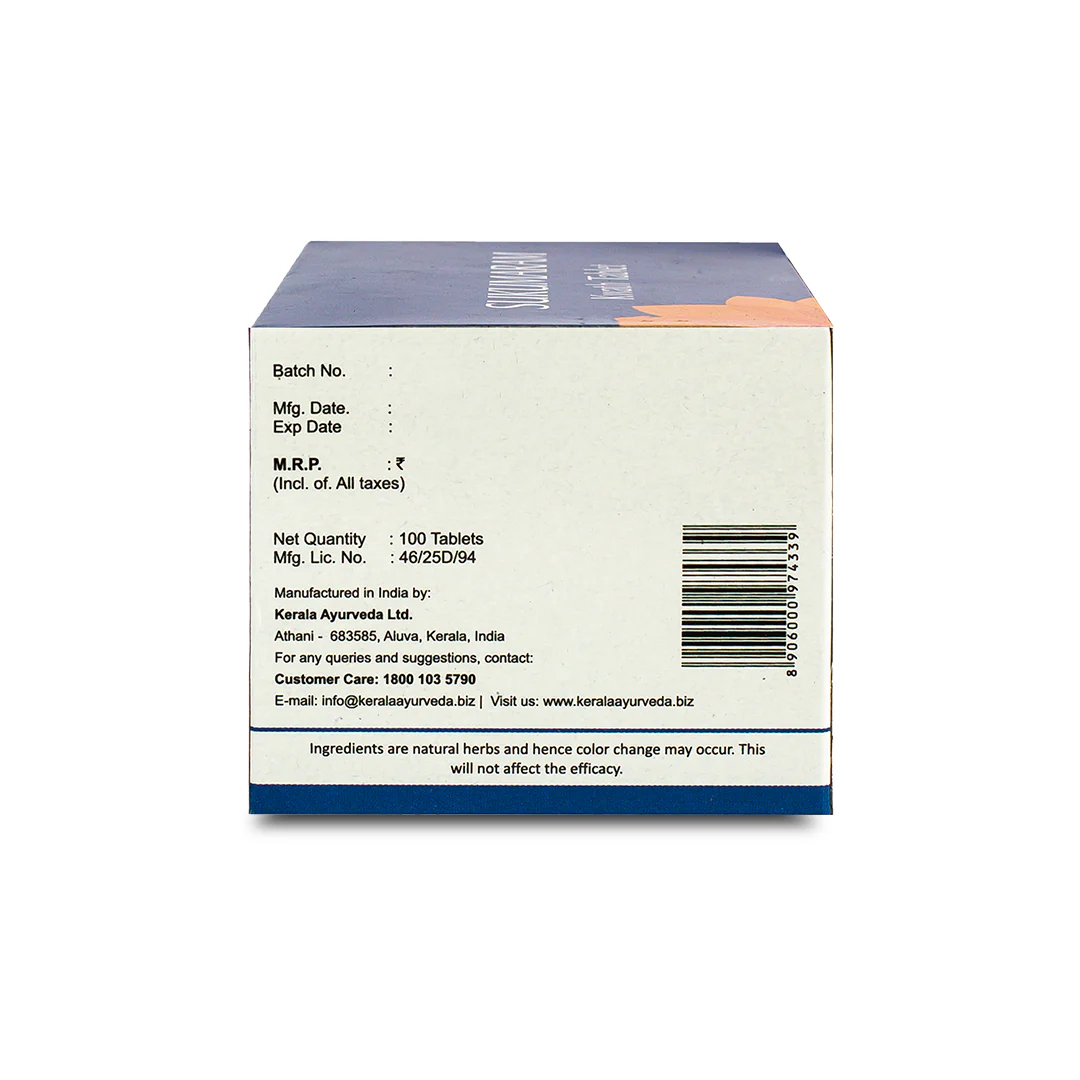 The Sukumaram Kwath Tablet is an ayurvedic medicine that can help with digestion issues. It helps in the treatment of abdominal distension that can be distressing to many people. It helps to alleviate heartburn and acidity that are caused by indigestion. The medicine helps heal problems such as bloating and gas. It helps alleviate problems such as IBS, splenomegaly, and hepatomegaly. Sukumaram kwath tablet is an ayurvedic medicine for constipation as it ensures healthy bowel movements. It helps in the treatment of duodenal ulcer, chronic gastritis and intestinal spasms too. This medicine is made into tablet form from sukumaram kwatham which makes it an effective remedy for a range of women’s health problems. The medicine is beneficial for women who have ovarian cysts and those who suffer from infertility. Sukumaram kwath can help women who have fibroids or uterine tumours, PCOS and membranous dysmenorrhea. It helps alleviate women’s health problems such as secondary amenorrhea and PMS symptoms too. Sukumaram kwath tablets are also useful in the treatment of other disorders such as hernia and rheumatoid diseases. The herbs used help your brain to relax which can help in the treatment of depression as it effectively releases tension and stress. Sukumaram Kwath tablet helps in alleviating pain caused due to menstrual-related issues, indigestion, flatulence, constipation, and other gynaecological disorders. Sukumaram Kwath tablet helps relieve constipation and is beneficial in abdominal pain, hernia, and motility issues associated with intestines. It helps in correcting menstrual irregularities like painful and delayed menstruation and is beneficial in hormonal problems like PCOS. It also helps balance the Tridoshas and mainly aids in correcting the movement of Vata.