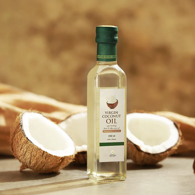 Coconut Oil: Rich in lauric acid, Vitamin E and antioxidants, it balances cholesterol level and enhances skin health For both external and internal use. Or as directed by an Ayurvedic practitioner.
