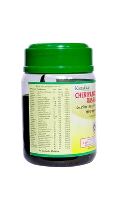 S.No Sanskrit Name Botanical Name Qty 1 Sarkara Saccharum officinarum 4.320 g 2 Ghritam Ghee 1.280 ml 3 Makshika Honey 1.280 ml 4 Punarnava Boerhavia diffusa 0.040 g 5 Amrita Tinospora cordifolia 0.040 g 6 Haritaki Terminalia chebula 0.040 g 7 Amalaki Phyllanthus emblica 0.040 g 8 Vibhitaki Terminalia bellirica 0.040 g 9 Sunthi Zingiber officinale 0.040 g 10 Maricha Piper nigrum 0.040 g 11 Pippali Piper longum 0.040 g 12 Ela Eletteria cardomomum 0.040 g 13 Patra Cinnamomum tamala 0.040 g 14 Twak Cinnamomum verum 0.040 g 15 Yavani Cuminum cyminum 0.040 g 16 Saindhava Rock salt 0.040 g 17 Vidanga Embelia ribes 0.040 g 18 Rasna Alpinia galanga 0.040 g 19 Bharngi Rotheca serrata 0.040 g 20 Chavya Piper mullesua 0.040 g 21 Grandhika Piper longum (wild var.) 0.040 g 22 Dhanya Coriandrum sativum 0.040 g 23 Karijiraka Nigella sativa 0.040 g 24 Madhurika Foeniculum vulgare 0.040 g 25 Mamsi Nardostachys grandiflora 0.040 g 26 Kushtha Saussurea costus 0.040 g 27 Chitraka Plumbago zeylanica 0.040 g 28 Sariba Hemidesmus indicus 0.040 g 29 Varahi Curculigo orchioides 0.040 g 30 Aswagandha Withania somnifera 0.040 g 31 Madhusnuhi Smilax china 0.040 g