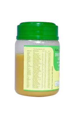 Each 10 g prepared out of : S.No Sanskrit Name Botanical Name Qty 1 Ghritam Ghee 11.873 ml 2 Kasmari Gmelina arborea 0.865 g 3 Vilva Aegle marmelos 0.865 g 4 Patala Stereospermum colais 0.865 g 5 Syonaka Oroxylum indicum 0.865 g 6 Agnimandha Premna corymbosa 0.865 g 7 Salaparni Pseudarthria viscida 0.865 g 8 Prisniparni Desmodium gangeticum 0.865 g 9 Brihati Solanum anguivi 0.865 g 10 Nidigdhika Solanum virginianum 0.865 g 11 Gokshura Tribulus terrestris 0.865 g 12 Sathi Hedychium spicatum 0.865 g 13 Danti Baliospermum montanum 0.865 g 14 Surahva Cedrus deodara 0.865 g 15 Punarnava Boerhavia diffusa 0.865 g 16 Svetapunarnava Boerhavia verticillata 0.865 g 17 Snuk Euphorbia neriifolia 0.865 g 18 Arkamuala Calotropis gigantea 0.865 g 19 Pathya Terminalia chebula 0.865 g 20 Bhukadamba Neolamarckia cadamba 0.865 g 21 Arushkara Semecarpus anacardium 0.865 g 22 Karanjamula Pongamia pinnata 0.865 g 23 Varanamula Crataeva magna 0.865 g 24 Pippalimula Piper longum (wild var.) 0.865 g 25 Pushkaramula Inula racemosa 0.865 g 26 Yava Hordeum vulgare 1.385 g 27 Kola Ziziphus mauritiana 1.385 g 28 Kulatha Macrotyloma uniflorum 1.385 g 29 Pippali Piper longum 0.084 g 30 Pippalimula Piper longum (wild var.) 0.084 g 31 Chavya Piper mullusea 0.084 g 32 Vacha Acorus calamus 0.084 g 33 Nichula Homonoia riparia 0.084 g 34 Rohisha Sphaeranthus indicus 0.084 g 35 Trivrit Operculina turpethum 0.084 g 36 Vidanga Embelia ribes 0.084 g 37 Kampilla Mallotus philippensis 0.084 g 38 Bharngi Rotheca serrata 0.084 g 39 Visva Zingiber officinale 0.084 g