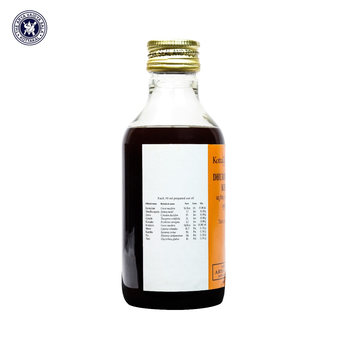 S.No Sanskrit Name Botanical Name Qty 1 Kerataila Cocos nucifera 10.00 ml 2 Dhurdhurapatra Datura metel 10.00 ml 3 Durva Cynodon dactylon 10.00 ml 4 Guluchi Tinospora cordifolia 10.00 ml 5 Kimsuka Erythrina variegata 10.00 ml 6 Keraksira Cocos nucifera 10.00 ml 7 Musta Cyperus rotundus 0.156 g 8 Kushta Sassurea costus 0.156 g 9 Ela Cynnamoum verum 0.156 g 10 Yasti Glycyrrhiza glabra 0.156 g