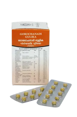 S.No Sanskrit Name Botanical Name Qty 1 Gorochana Ox gall 0.002 g 2 Kankolam Piper cubeba 0.002 g 3 Marjarimada Civet 0.002 g 4 Jahakamada Jund 0.002 g 5 Kunkuma Crocus sativus 0.002 g 6 Sasamkam Cinnamomum camphora 0.002 g 7 Rudraksha Elaecocarpus serratus 0.001 g 8 Pravalam Coral 0.001 g 9 Mauktikam Pearl 0.001 g 10 Yashtyhwa Glycyrrhiza glabra 0.001 g 11 Ela Elettaria cardamomum 0.001 g 12 Tvak Cinnamomum verum 0.001 g 13 Patra Cinnamomum tamala 0.001 g 14 Nagakesara Mesua ferrea 0.001 g 15 Bhunimba Solanum anguivi 0.001 g 16 Kiratakam Swertia chirata 0.001 g 17 Kankushta Excreta of new born elephant 0.001 g 18 Meghasara Cyperus rotundus 0.001 g 19 Hemachurna Gold 0.001 g 20 Talaka Orpiment 0.001 g 21 Agragrahi Anacyclus pyrethrum 0.001 g 22 Gandasringam Rhinoceros unicornis 0.001 g 23 Gunjamulam Abrus precatorius 0.001 g 24 Nirvisha Kyllinga nemoralis 0.001 g 25 Ambaram Mica 0.001 g 26 Hiravi Garcinia morella 0.001 g 27 Himambu Rosa centifolia q. s. 28 Stanya Milk q. s. 29 Jiraka Cuminum cyminum q. s.