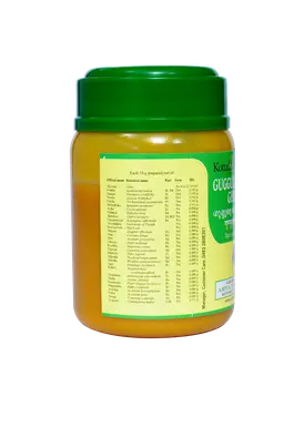 Usage : As directed by the physician Dosage : 5 to 10 g twice daily or as directed by the Physician Indication : All vata disorders, inflammatory and degenerative conditions, fistula in ano, cysts and tumors, metabolic dysfunction, skin diseases, chronic ulcers Caution : To be taken under Medical Supervision