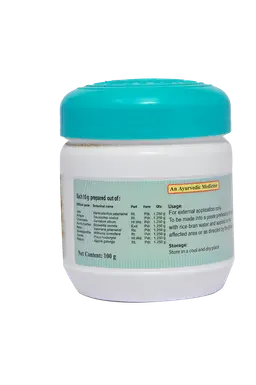 Usage : To be made into a paste preferably by boiling with rice bran water and applied on the affected area Dosage : For External use only Indication : Acute Inflammatory joint diseases