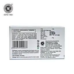 Major ingredients: Yasti (Glycyrrhiza glabra), Haridra(Curcuma longa), Laksha (Lacifer lacca), Aswagandha (Withania somnifera), Kerataila (Cocos nucifera), Glycerin. Benefits: Helps to maintain health and glow of baby’s skin. Grade I toilet soap. TFM: 76%. Contains no animal fat. Soap base made from vegetable origin.