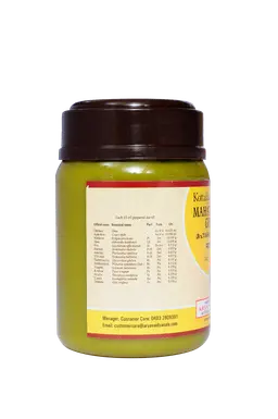 S.No Sanskrit Name Botanical Name Qty 1 Ghritam Ghee 10.625 ml 2 Ajakshira Goat?s milk 10.000 ml 3 Markava Eclipta prostrata 10.000 g 4 Vasa Justicia beddomei 10.000 g 5 Sita Saccharum officinarum 0.313 g 6 Haritaki Terminalia chebula 0.833 g 7 Amalaki Phyllanthus emblica 0.833 g 8 Vibhitaki Terminalia bellirica 0.833 g 9 Yashtimadhu Glycyrrhiza glabra 0.156 g 10 Dvikakakoli Withania somnifera (sub) 0.312 g 11 Vyaghri Solanum virginianum 0.156 g 12 Krishna Piper longum 0.156 g 13 Amrita Tinospora cordifolia 0.156 g 14 Utpala Kaempferia rotunda 0.156 g 15 Draksha Vitis vinifera 0.156 g