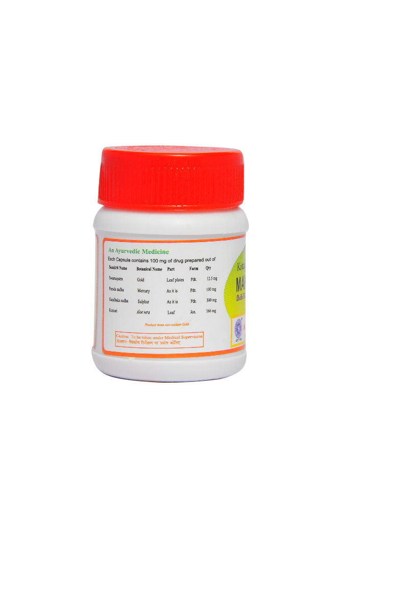 S.No Sanskrit Name Botanical Name Qty 1 Svarnam Gold 12.5 mg 2 Sutam Mercury 100 mg 3 Gandhakam Sulphur 300 mg 4 Kumari Aloe vera 166 mg