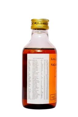 S.No Sanskrit Name Botanical Name Qty 1 Tailam Sesamum indicum 10.000 ml 2 Nagara Zingiber officinale 16.667 g 3 Chitraka Plumbago zeylanica 7.778 g 4 Devadaru Cedrus deodara 3.889 g 5 Chirivilva Holoptelea integrifolia 0.972 g 6 Karanja Pongamia pinnata 0.972 g 7 Musta Cyperus rotundus 0.108g 8 Arimeda Acacia nilotica 0.108g 9 Haritaki Terminalia chebula 0.108g 10 Amalaki Phyllanthus emblica 0.108g 11 Vibhitaki Terminalia bellirica 0.108g 12 Chatri Leea indica 0.108g 13 Danti Baliospermum motanum 0.108g 14 Arka Calotropis gigantea 0.108g 15 Guggulu Commiphora mukul 0.108g 16 Kshira Milk 20.000 ml 17 Sathi Kaempferia galanga 0.020 g 18 Pushkara Inula racemosa 0.020 g 19 Sarngeshtha Pongamia pinnata 0.020 g 20 Hapusha Sphaeranthus indicus 0.020 g 21 Pipali Piper longum 0.020 g 22 Gajapipali Scindapsus officinalis 0.020 g 23 Pipalimula Piper longum (wild var.) 0.020 g 24 Bharngi Rotheca serrata 0.020 g 25 Rasna Alpinia galanga 0.020 g 26 Haridra Curcuma longa 0.020 g 27 Daruharidra Berberis aristata 0.020 g 28 Jala Plectranthus vettiveroides 0.020 g 29 Ambuda Cyperus rotundus 0.020 g 30 Ela Elettaria cardamomum 0.020 g 31 Tvak Cinnamomum verum 0.020 g 32 Nagakesara Mesua ferrea 0.020 g 33 Patra Cinnamomum tamala 0.020 g 34 Manjishtha Rubia cordifolia 0.020 g 35 Chandana Santalam album 0.020 g 36 Padmaka Prunus cerasoides 0.020 g 37 Mamsi Nardostachyes grandiflora 0.020 g 38 Lodhra Symplocos cochinchinensis var. laurina 0.020 g 39 Haritaki Terminalia chebula 0.020 g 40 Amalaki Phyllanthus emblica 0.020 g 41 Vibhitaki Terminalia bellirica 0.020 g 42 Kushta Saussurea costus 0.020 g 43 Madhuchishta Bee wax 0.020 g