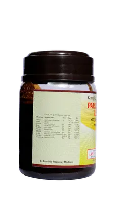 S.No Sanskrit Name Botanical Name Qty 1 Sarkara Saccharum officinarum 4.898 g 2 Madhu Honey 0.816 ml 3 Parushaka Grewia asiatica 0.816 g 4 Ikshu Saccharum officinarum 1.633 g 5 Draksha Vitis vinifera 3.265 g 6 Vidanga Embelia ribes 0.204 g 7 Ativisha Aconitum heterophyllum 0.204 g 8 Lodhra Symplocos cochinchinensis var. laurina 0.204 g 9 Devadaru Cedrus deodara 0.204 g 10 Gadahwa Saussurea costus 0.204 g