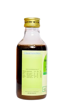 Usage : Add 3 times of lukewarm water each time to the kashayam and to be taken twice daily before food in empty stomach Dosage : 10 to 15 ml for adults and 5 to 10 ml for children or as directed by the Physician Indication : Intervertebral disc prolapse, sacroilitis, sciatica , varicose veins