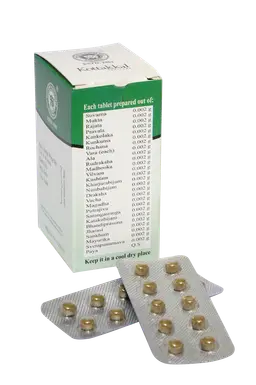 S.No Sanskrit Name Botanical Name Qty 1 Suvarna Gold 0.002 g 2 Mukta Pearl 0.002 g 3 Rajatha Silver 0.002 g 4 Pravala Coral 0.002 g 5 Kankolaka Piper cubeba 0.002 g 6 Kunkuma Crocus sativus 0.002 g 7 Rochana Ox gall 0.002 g 8 Haritaki Terminalia chebula 0.002 g 9 Amalaki Phyllanthus emblica 0.002 g 10 Vibhitaki Terminalia bellirica 0.002 g 11 Rudraksha Elaeocarpus serratus 0.002 g 12 Madhuka Madhuca longifolia 0.002 g 13 Vilvam Aegle marmelos 0.002 g 14 Kushtam Saussurea costus 0.002 g 15 Kharjurabijam Cycas circinalis 0.002 g 16 Nimbabijam Azadirachta indica 0.002 g 17 Draksha Vitis vinifera 0.002 g 18 Vacha Acorus calamus 0.002 g 19 Magada Piper longum 0.002 g 20 Putrajivi Mimusops elangi 0.002 g 21 Katakabijam Strychnos potatorum 0.002 g 22 Bhandiprasuna Albizia lebbeck 0.002 g 23 Jharasi Desmodium gangeticum 0.002 g 24 Sankham Conch 0.002 g 25 Mayurika Achyranthes aspera 0.002 g 26 Svetapunarnava Boerhavia diffusa 0.002 g 27 Paya Milk Q.S.
