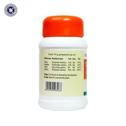 S.No. Sanskrit name Botanical name Qty 1 Aksha Terminalia bellirica 1.667 g 2 Amalaka Phyllanthus emblica 1.667 g 3 Yashti Glycyrrhiza glabra 1.667 g 4 Abhaya Terminalia chebula 5.000 g