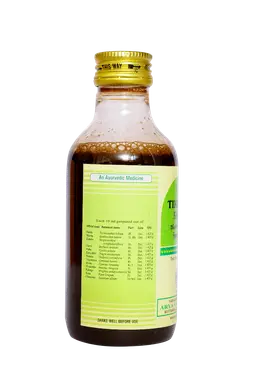 Usage : Add 3 times of lukewarm water each time to the kashayam and to be taken twice daily before food in empty stomach Dosage : 10 to 15 ml for adults and 5 to 10 ml for children or as directed by the Physician Indication : Skin diseases of inflammatory nature, anemia, non healing ulcers, thyroid dysfunction, inflammatory bowel diseases, anxiety and mental stress, leucoderma, liver diseases, leucorrhoea and seizure disorders