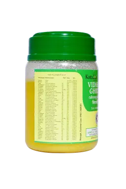 S.No Sanskrit Name Botanical Name Qty 1 Ghritam Ghee 11.584 ml 2 Kshiram Milk 10.902 ml 3 Vidari Pueraria tuberosa 0.545 g 4 Panchamgula Ricinus communis 0.545 g 5 Vrischikali Heliotropium indicum 0.545 g 6 Vrischiva Boerhavia diffusa 0.545 g 7 Devahvaya Cedrus deodara 0.545 g 8 Mudgaparni Dysolobium pilosum 0.545 g 9 Mashaparni Vigna radiata var. sublobata 0.545 g 10 Kandukari Mucuna pruriens 0.545 g 11 Abhiru Asparagus racemosus 0.545 g 12 Vira Coccinia grandis 0.545 g 13 Jivanti Leptadenia reticulata 0.545 g 14 Dvijivaka Pueraria tuberosa (sub.) 1.090 g 15 Brihati Solanum anguivi 0.545 g 16 Nidigdhika Solanum virginianum 0.545 g 17 Prisniparni Desmodium gangeticum 0.545 g 18 Salaparni Pseudarthria viscida 0.545 g 19 Gokshura Tribulus terrestris 0.545 g 20 Gopasuta Hemidesmus indicus 0.545 g 21 Tripadi Desmodium triflorum 0.545 g 22 Vidari Pueraria tuberosa 0.045 g 23 Panchamgula Ricinus communis 0.045 g 24 Vrischikali Heliotropium indicum 0.045 g 25 Vrischiva Boerhavia diffusa 0.045 g 26 Devahvaya Cedrus deodara 0.045 g 27 Mudgaparni Dysolobium pilosum 0.045 g 28 Mashaparni Vigna radiata var. sublobata 0.045 g 29 Kandukari Mucuna pruriens 0.045 g 30 Abhiru Asparagus racemosus 0.045 g 31 Vira Coccinia grandis 0.045 g 32 Jivanti Leptadenia reticulata 0.045 g 33 Dvijivaka Pueraria tuberosa (sub.) 0.090 g 34 Brihati Solanum anguivi 0.045 g 35 Nidigdhika Solanum virginianum 0.045 g 36 Prisniparni Desmodium gangeticum 0.045 g 37 Salaparni Pseudarthria viscida 0.045 g 38 Gokshura Tribulus terrestris 0.045 g 39 Gopasuta Hemidesmus indicus 0.045 g 40 Tripadi Desmodium triflorum 0.045 g