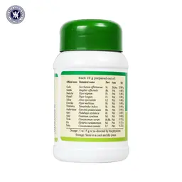 S.No Sanskrit Name Botanical Name Qty 1 Guda Saccharum officinarum 12.000 g 2 Sunthi Zingiber officinale 0.480 g 3 Maricha Piper nigrum 0.480 g 4 Pippali Piper longum 0.480 g 5 Talisa Abies spectabilis 0.480 g 6 Chavika Piper mullesua 0.480 g 7 Tintrinika Tamarindus indica 0.480 g 8 Amlavetasa Garcinia pedunculata 0.480 g 9 Agni Plumbago zeylenica 0.480 g 10 Ajaji Cuminum cyminum 0.480 g 11 Twak Cinnamomum verum 0.120 g 12 Ela Elletaria cardamomum 0.120 g 13 Patra Cinnamomum tamala 0.120 g